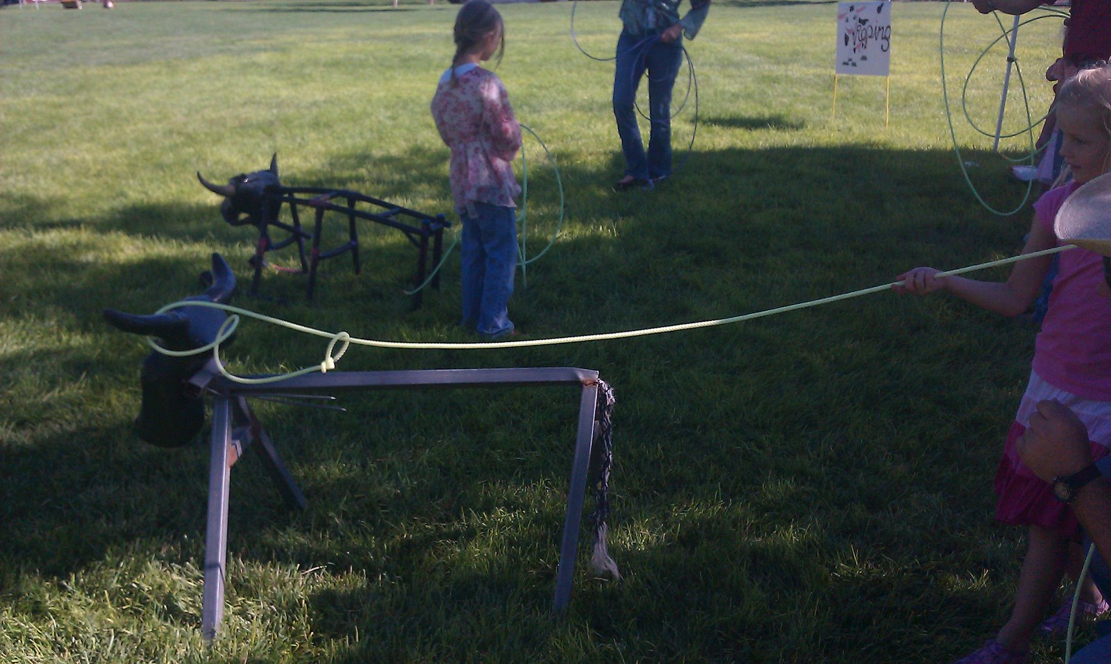 When Cat finally got tired of hauling around everyone small enough to fit in the handcart, she tried her hand at roping a steer.