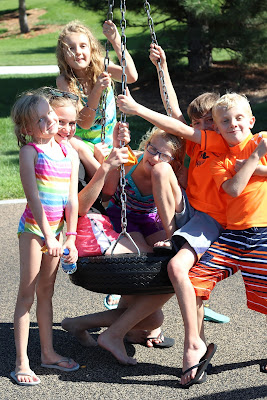 Pat needed Cat's help with something, so I sent Cat to Pat's house with the salad in the closed container. And then I made a critical error. I sent Jack and Eliza to Sis. B's house with the salad in the bowl with the cellophane over it. I decided to save them a little time by sending them out the back door to this neighbor's house. Jack and Eliza seemed to be taking longer than I thought they should, but after a little while, I saw them climbing on the gate to get to our back yard. I went outside and reminded them not to climb on the gate, and Jack excitedly told me about the candy that Sis. B. had given them when they delivered the salad. Then he told me that he'd dropped the salad on the way over.
