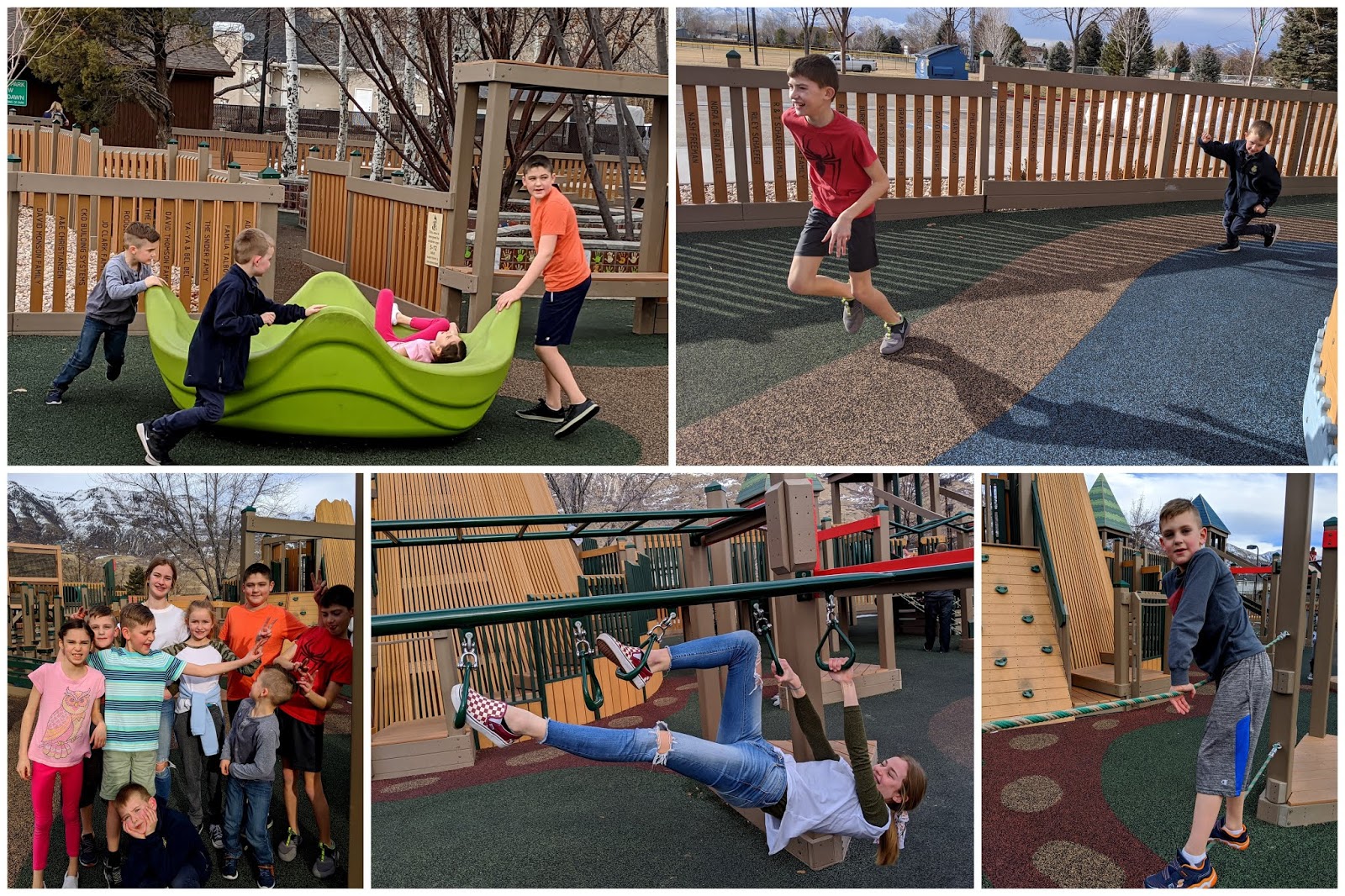 We were enjoying unseasonably warm weather and since we'd spent the last 5 Friday afternoons going right to Ski School from school, we decided to take advantage of the free time and the warmth by meeting up with cousins at a playground. It was great.