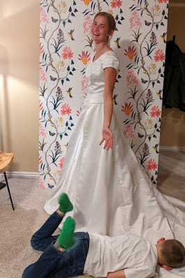 Liza's sleepover turned out to be so fun for all of us! The highlight was the fashion show. Cat gave Liza permission for her and her friends to try on her dresses from the dances she's been to. When she came home from work, they were in the middle of it and having a blast. She looked at me and said, "Mom, you know what? I've never tried on your wedding dress." So we went upstairs and got it out and it was the best thing ever. Cat and Liza looked so beautiful, and only a few years ahead of their time.