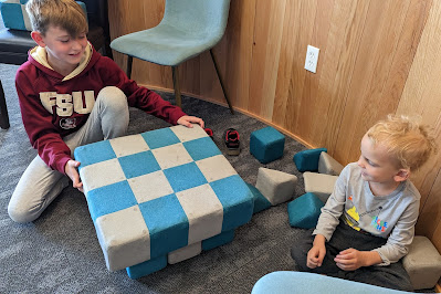 | Malachi was hanging out with us that day, and Luke stayed home from school because of allergies, so the two of them played together during Liza's appointment. |